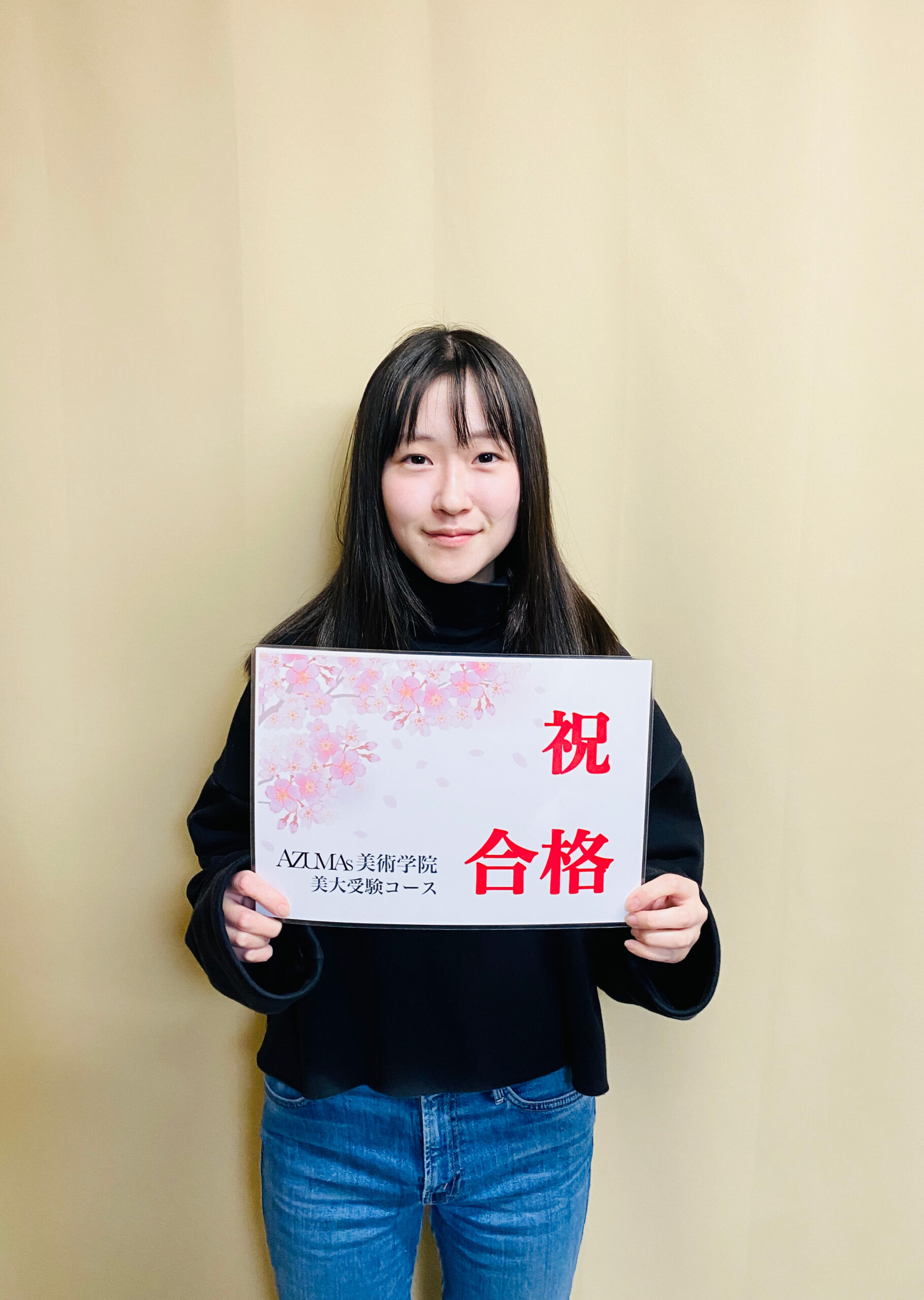たくさん鍛えてくださって本当にありがとうございました。長期休みの講習では、同じ大学を目指す生徒さんとの交流を通して、自分にはないアイディアもらったり、自分の作品の改善点を見つけたりすることができました。アズビで学ぶことができて本当によかったです。