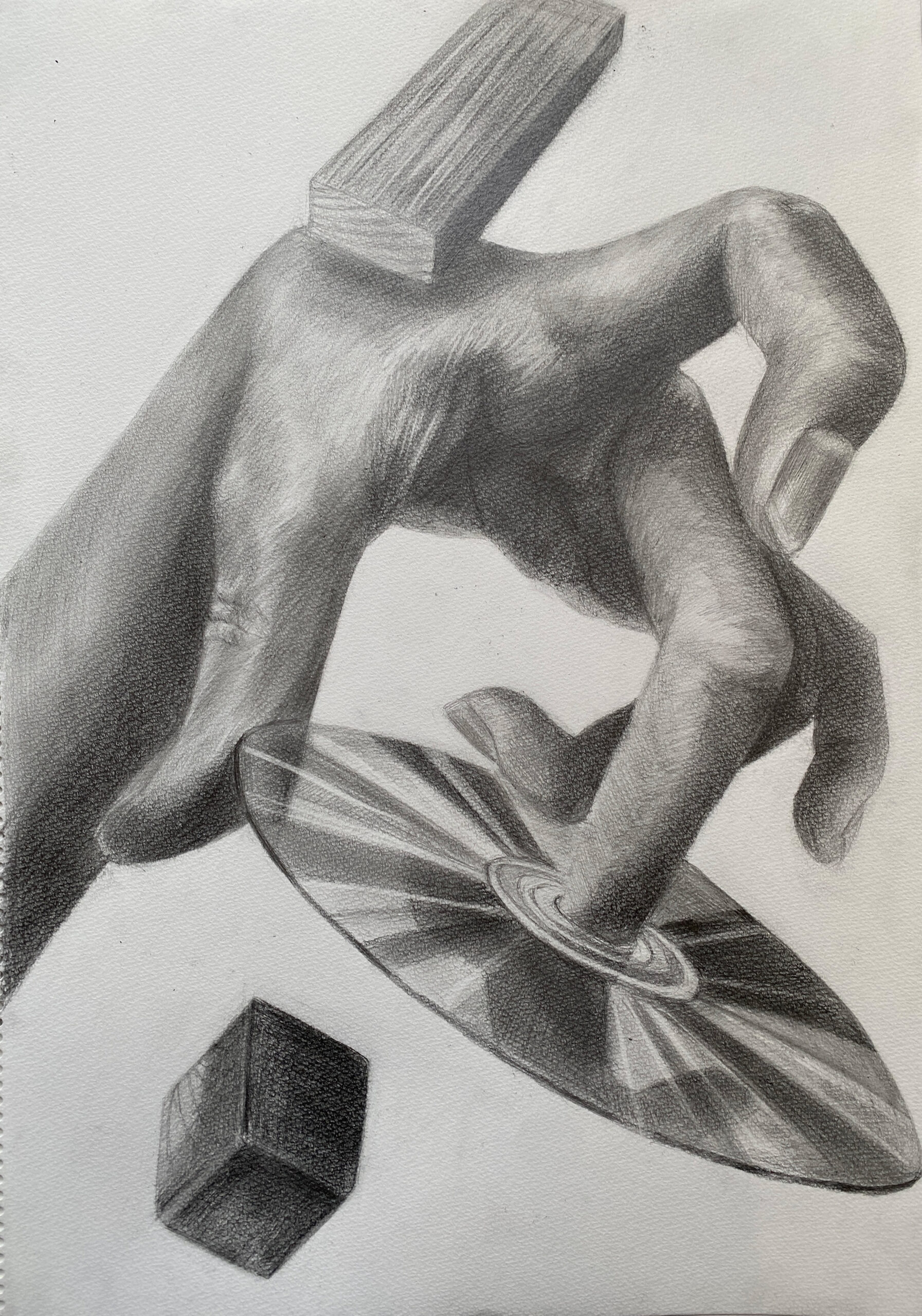 自分に合った構図を見極めてひたすら練習することです!受験二週間くらい前まで色々な構図を試し、一番手応えのある構図を決めて直前まで研鑽しました。私が選んだ構図は参考作品がほぼ見つからなかったので、自分の手を撮ってモノクロ加工し、明暗の参考にしました。また、上手い人の絵を観察するのも十分学びがありますが、直接描き方聞くのも多くの示唆を得られました!