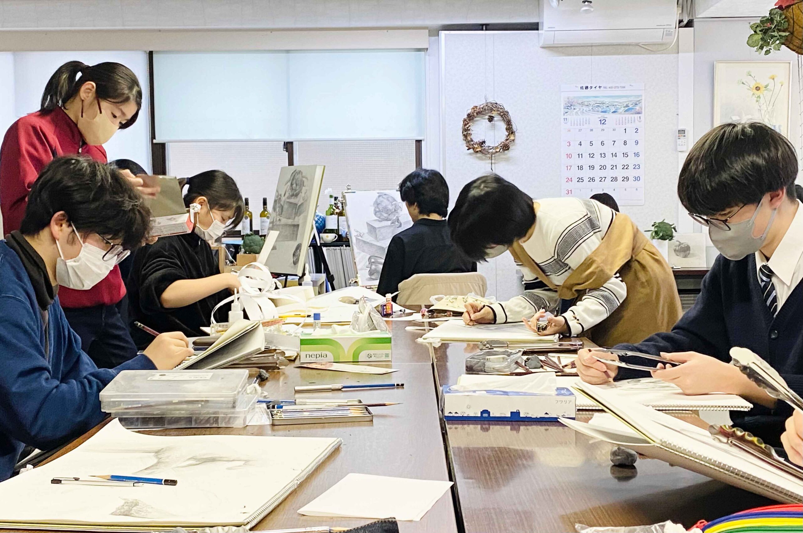 中学生、高校一年生から早めの受験対策を行います。主にデッサン力や色彩力を鍛えます。